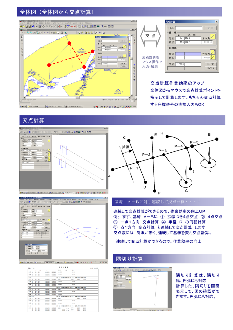 ータ・、測量基本システム、座標データ・画地結線データ等の保存、測量計算(トラバース計算、交点計算、